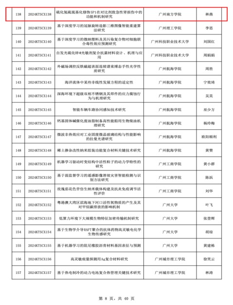 林燕教授的项目《硫化氢硫巯基化修饰SP1在对比剂致急性肾损伤中的功能和机制研究》申报立项了广东省普通高校特色创新项目(自然科学类)